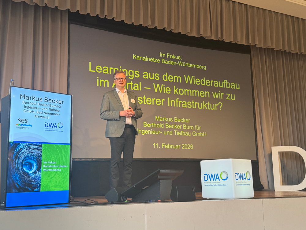 Den nächsten Wissenstransfer und Raum fürs Netzwerken gibt es am 24. März 2026 in Fellbach beim 11. Expertenforum Regenüberlaufbecken Baden-Württemberg, zu der Boris Diehm, Landesverbandsvorsitzender DWA-Landesverband Baden-Württemberg und Abteilungsleiter Klärwerke und Kanalbetrieb bei der SES, begrüßen wird.