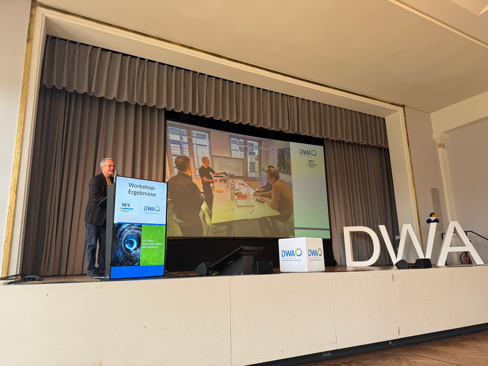 Es folgten vertiefende Fachbeiträge aus der Praxis. Eindrücklich waren Einblicke in moderne Abwasseranalysen. „Abwasser lügt nicht“, brachte SES-Zentrallaborleiter Peter Schilling die Aussagekraft der Daten auf den Punkt und zeigte, welche zusätzlichen Erkenntnisse kommunales Monitoring liefern kann. Neben Erkenntnissen zu Technik und Organisation im Betriebsalltag rückte auch immer der menschliche Faktor in den Fokus. Christian Buch, Abteilungsleiter Entwässerung, Stuttgart 21 und Rosenstein bei der SES betonte: „Es braucht auch in unserer Branche tragfähige Kameradschaft – wie in einer Blaulichtfamilie.“